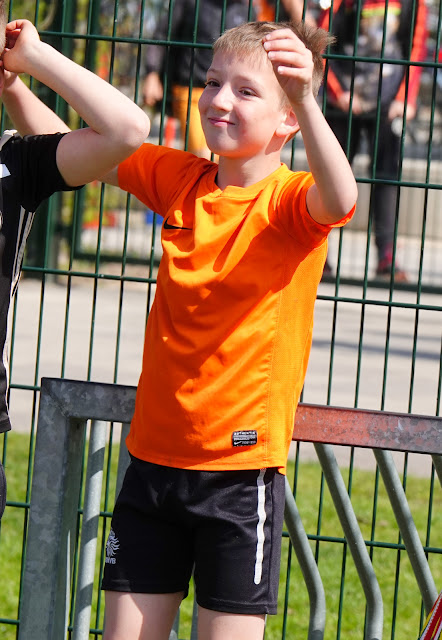 Wij wonen vlakbij de school van onze kleinkinderen Luuk en Saar, dus ik liep er gisterenmorgen even heen om te zien of ik vanuit de verte wat foto's kon maken. Het was de laatste dag voor de meivakantie en de koningsspelen werden gehouden. Ik had geluk want de klas van Saar kwam net van het schoolterrein afgelopen, ze gingen picknicken. Saar mocht van de juffrouw even uit de rij om haar verhaal aan mij te vertellen.