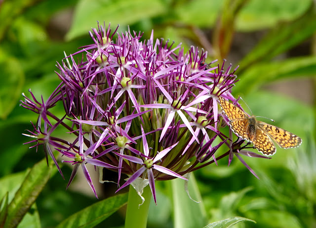 De allium was deze week al aan de beurt geweest maar nu met een vlinder erop is hij extra mooi en verdient weer een plekje op mijn blog.